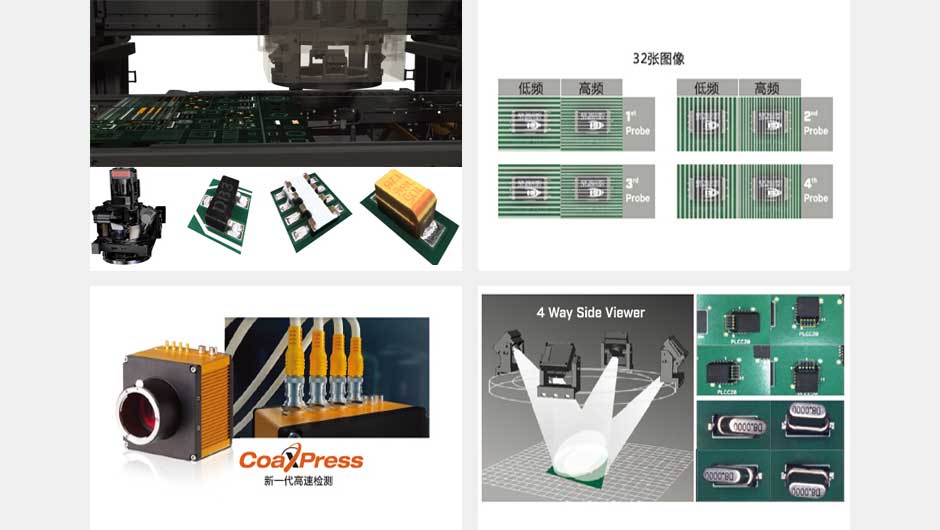 數(shù)字變頻投影技術(shù)利用4個3D發(fā)射頭獲取無盲點的3D圖像,結(jié)合高低頻摩爾條紋進行組件高度檢測,應(yīng)用完整3D結(jié)合主相機進行精確的檢測。